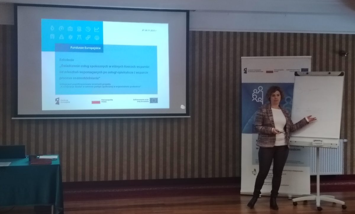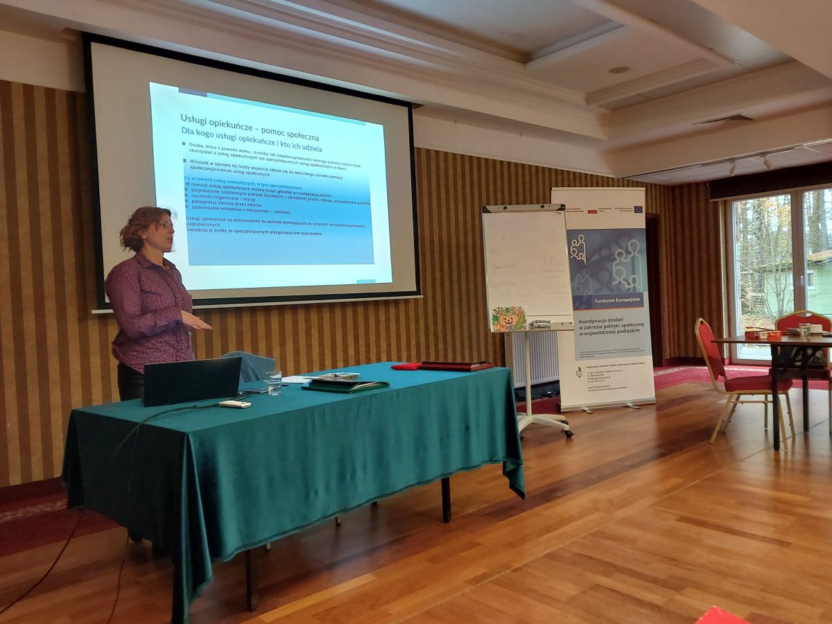 W dniach 27-28.10.2025 r. i 27-28.11.2025 r. w Hotelu Albatros w Serwach, odbyły się dwa dwudniowe szkolenia pn. „Świadczenie usług społecznych w różnych formach wsparcia: od mieszkań wspomaganych po usługi opiekuńcze i wsparcie procesu usamodzielniania” zorganizowane przez Regionalny Ośrodek Polityki Społecznej w Białymstoku w ramach projektu „Koordynacja działań w zakresie polityki społecznej w województwie podlaskim”, Programu Fundusze Europejskie dla Rozwoju Społecznego 2021-2027 (FERS), Działania 04.13: Wysokiej jakości system włączenia społecznego, współfinansowanego ze środków Europejskiego Funduszu Społecznego Plus, w ramach typu projektów pn. Działania ROPS w zakresie usług społecznych, pomocy społecznej, ekonomii społecznej i aktywnej integracji, służące włączeniu społecznemu, realizowane na poziomie wojewódzkim. W pierwszym terminie – 27-28.10.2025 r. udział wzięło 22 pracowników m.in.: Regionalnego Ośrodka Polityki Społecznej w Białymstoku, Departamentu Europejskiego Funduszu Społecznego/Departamentu Zarządzania Funduszami i Programami Urzędu Marszałkowskiego Województwa Podlaskiego oraz innych interesariuszy projektu zajmujących się planowaniem i ukierunkowaniem interwencji w województwie podlaskim, a w drugim terminie – 21 osób.