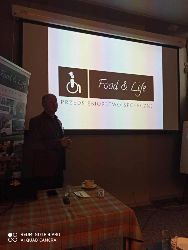 Następnie odwiedzono Przedsiębiorstwo Społeczne Food & Life, które zajmuje się aktywizacją zawodową osób z niepełnosprawnościami oraz wykluczonych społecznie, a także cateringiem okolicznościowym. Posiada foodtrack, który na terenie woj. małopolskiego sprzedaje zapiekanki.