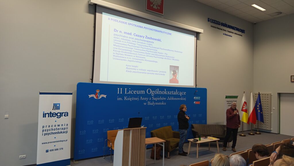 W dniu 18 października 2025 r. odbyły się II Podlaskie Spotkania Psychoterapeutyczne, zorganizowane przez Pracownię Psychoterapii i Psychoedukacji Integra. Tegoroczna konferencja pod hasłem „Praca z pacjentem ze złożoną diagnozą” zgromadziła liczne grono psychologów i psychoterapeutów z terenu województwa podlaskiego. Podczas spotkania uczestnicy wysłuchali 3 inspirujących prelekcji poświęconych m.in. pracy z pacjentami z podwójną diagnozą oraz wpływowi różnych czynników, w tym uzależnienia od alkoholu i narkotyków, na przebieg psychoterapii. Dzięki wsparciu Regionalnego Ośrodka Polityki Społecznej w Białymstoku, uczestnicy konferencji otrzymali specjalistyczne publikacje, które poszerzą ich wiedzę i umiejętności zawodowe. Spotkanie cieszyło się dużym zainteresowaniem. Na zakończenie uczestnicy mieli okazję zdobyć autograf jednego z prelegentów, a zarazem autora jednej z otrzymanych książek.