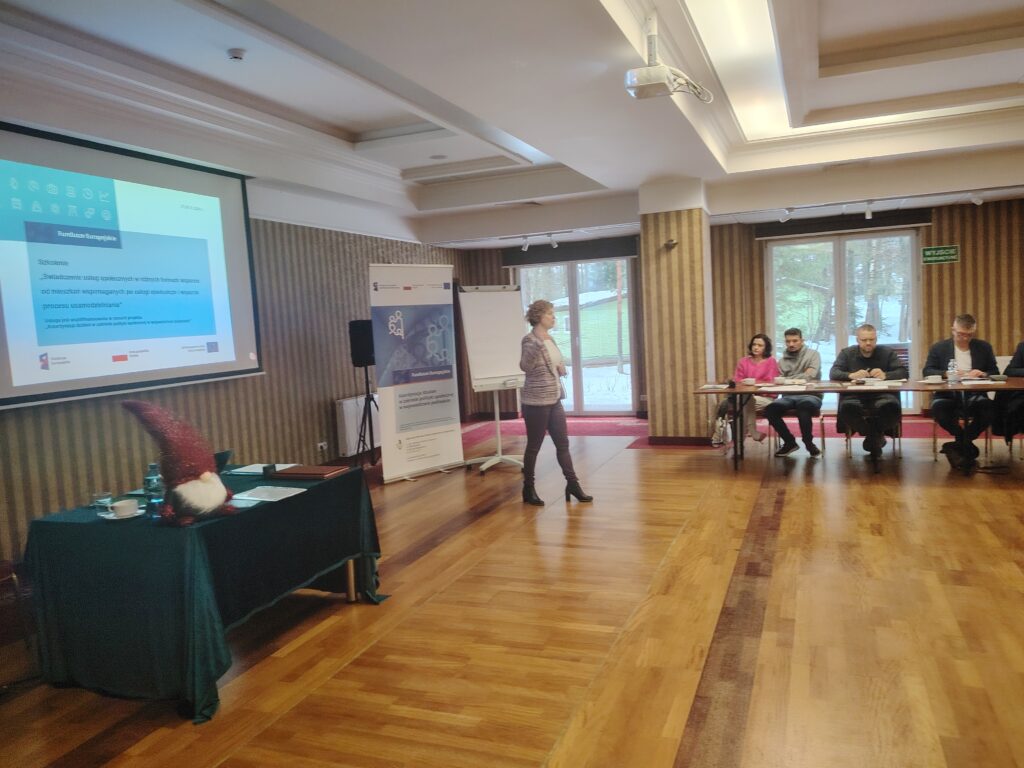 W dniach 27-28.10.2025 r. i 27-28.11.2025 r. w Hotelu Albatros w Serwach, odbyły się dwa dwudniowe szkolenia pn. „Świadczenie usług społecznych w różnych formach wsparcia: od mieszkań wspomaganych po usługi opiekuńcze i wsparcie procesu usamodzielniania” zorganizowane przez Regionalny Ośrodek Polityki Społecznej w Białymstoku w ramach projektu „Koordynacja działań w zakresie polityki społecznej w województwie podlaskim”, Programu Fundusze Europejskie dla Rozwoju Społecznego 2021-2027 (FERS), Działania 04.13: Wysokiej jakości system włączenia społecznego, współfinansowanego ze środków Europejskiego Funduszu Społecznego Plus, w ramach typu projektów pn. Działania ROPS w zakresie usług społecznych, pomocy społecznej, ekonomii społecznej i aktywnej integracji, służące włączeniu społecznemu, realizowane na poziomie wojewódzkim. W pierwszym terminie – 27-28.10.2025 r. udział wzięło 22 pracowników m.in.: Regionalnego Ośrodka Polityki Społecznej w Białymstoku, Departamentu Europejskiego Funduszu Społecznego/Departamentu Zarządzania Funduszami i Programami Urzędu Marszałkowskiego Województwa Podlaskiego oraz innych interesariuszy projektu zajmujących się planowaniem i ukierunkowaniem interwencji w województwie podlaskim, a w drugim terminie – 21 osób.