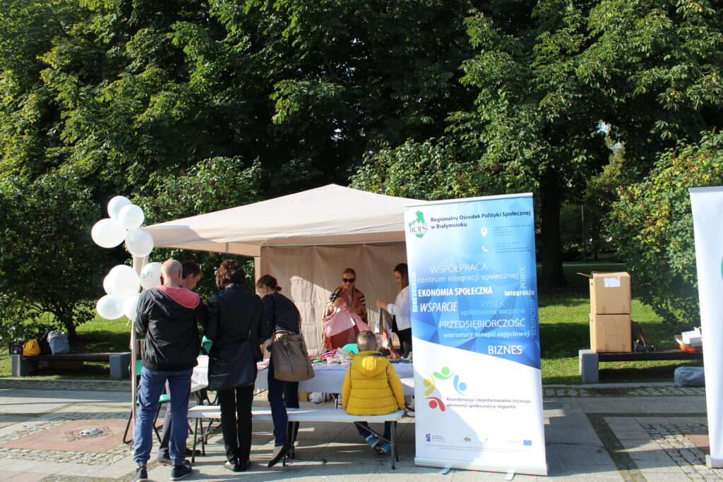W dniu 20 września 2020 roku na Placu Marszałka Józefa Piłsudskiego w Białymstoku (plac przed Teatrem Dramatycznym) odbyły się IX Podlaskie Targi Ekonomii Społecznej. Wystawców oraz gości przywitali Pani Bożena Tomaszewska – Zastępca Dyrektor Regionalnego Ośrodka Polityki Społecznej w Białymstoku, Pani Ewa Feszler – Dyrektor Wydziału Polityki Społecznej Podlaskiego Urzędu Wojewódzkiego, Pani Katarzyna Ancipiuk – Pełnomocnik Zarządu Województwa Podlaskiego do spraw współpracy z organizacjami pozarządowymi oraz Pan Rafał Średziński – Prezes Federacji Organizacji Pozarządowych Miasta Białystok.